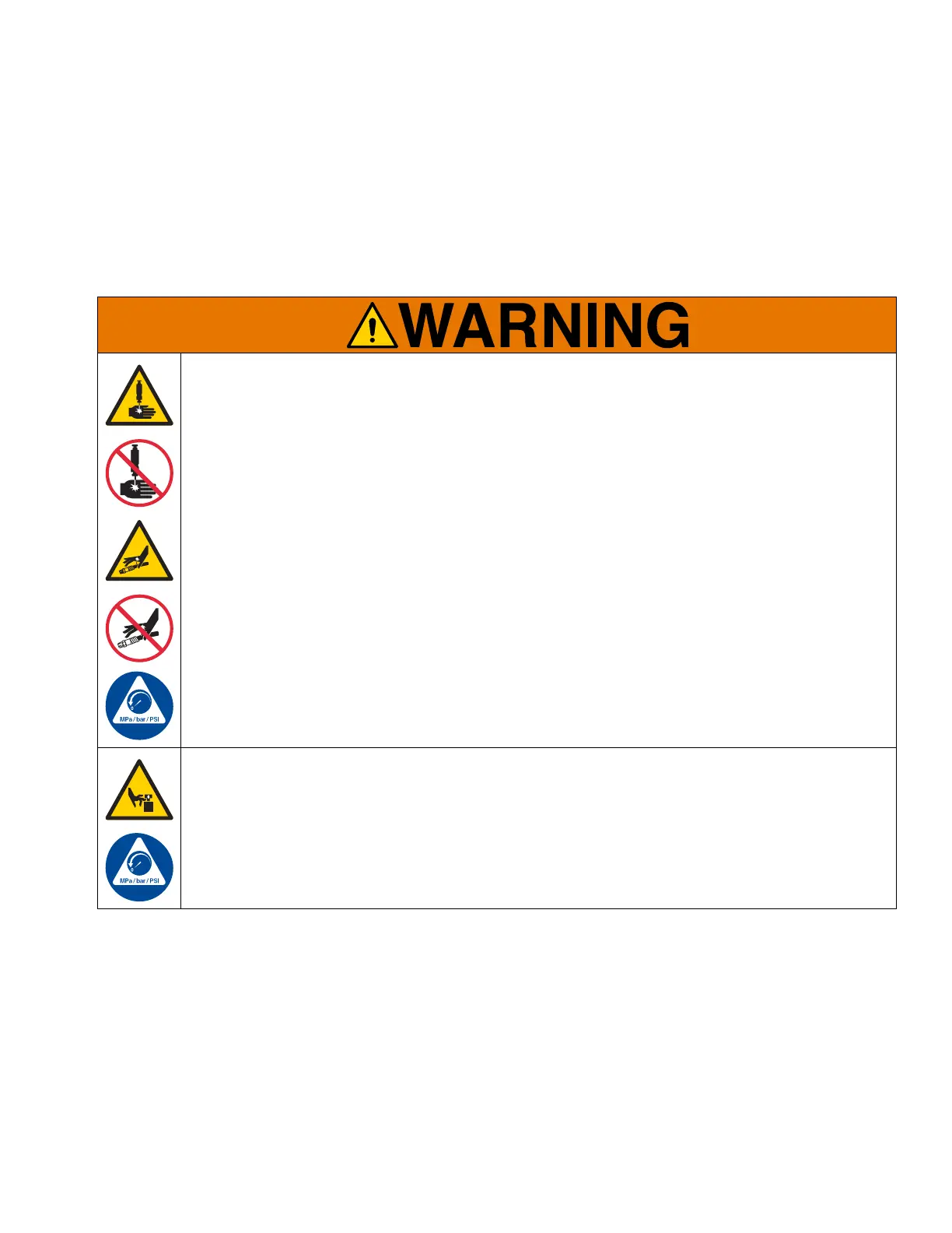 High-pressure fluid from spray gun, dispensing device, hose leaks, or ruptured components will pierce