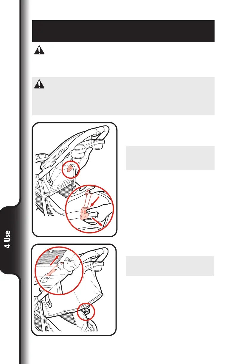Cuando realiza ajustes al asiento del cochecito, asegúrese de que la