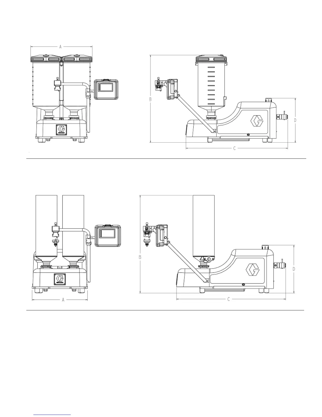 A typical PR70 Machine, with the standard On-Board 7.5 liter Stainless Steel Tanks has the following dimensions: