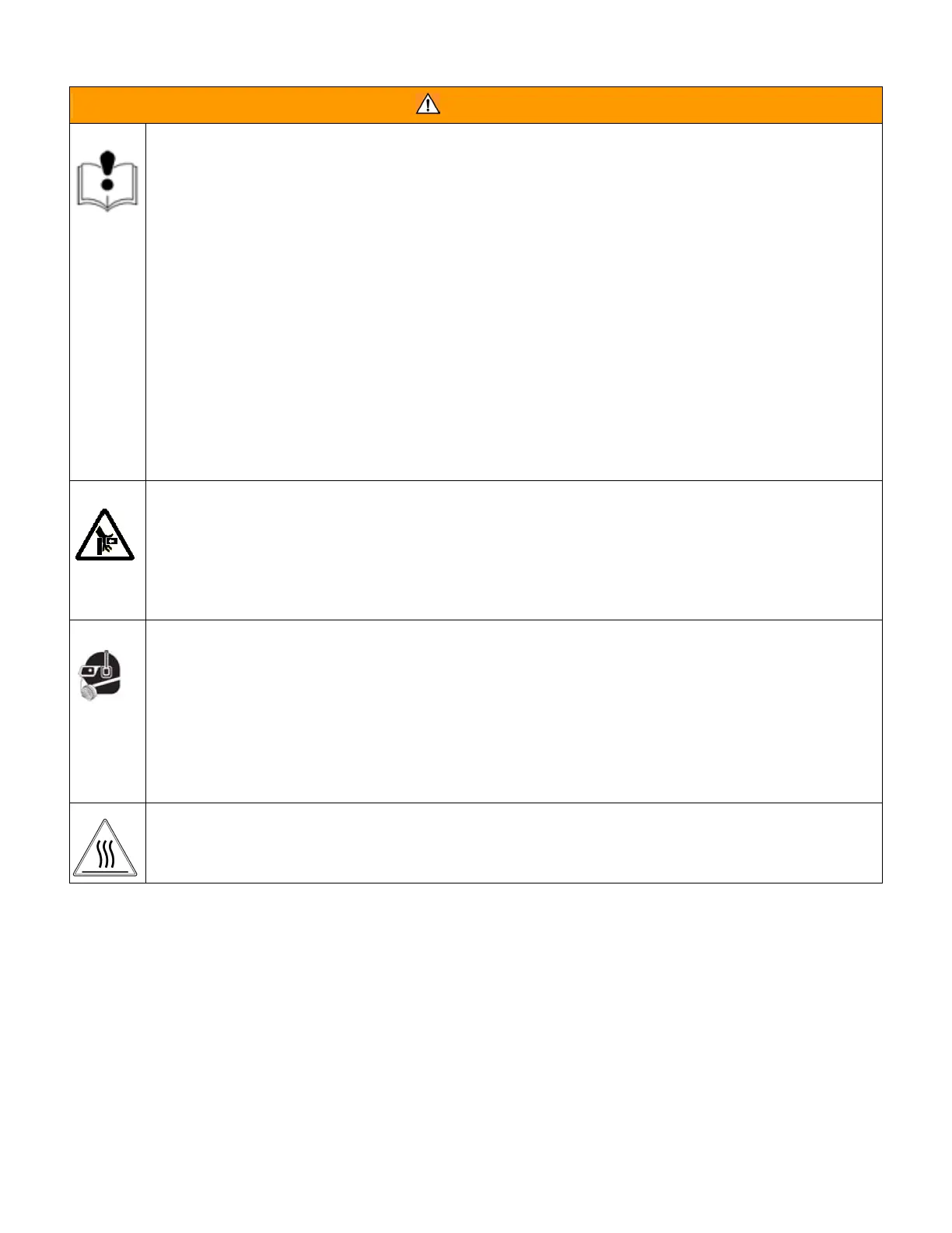 Equipment surfaces and fluid that’s heated can become very hot during operation. To avoid severe burns,