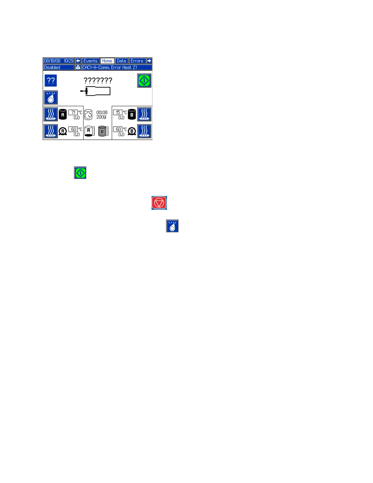 Shot button ( ) is inactive. Heat controls remain