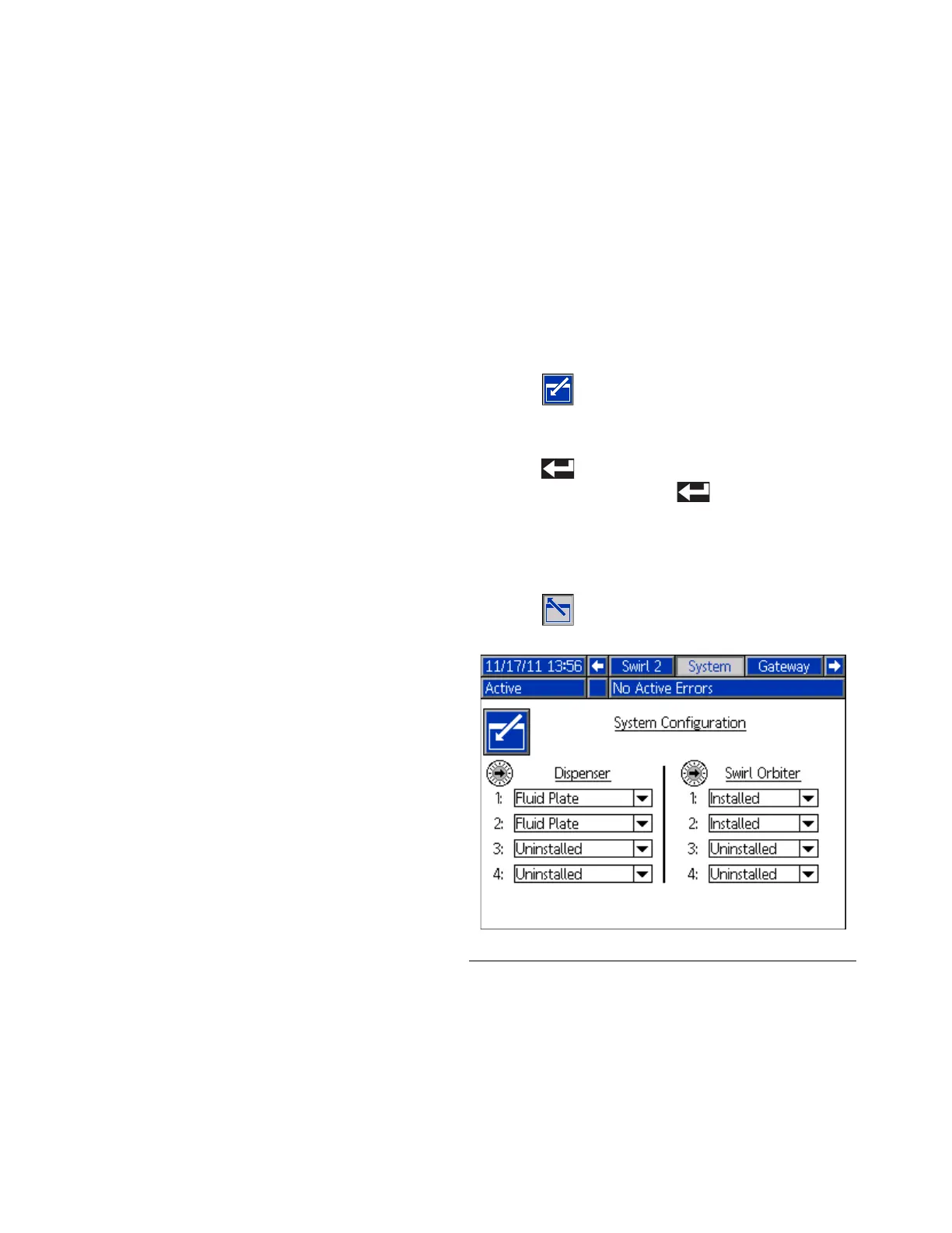 “Dispenser” on this screen) and number of installed swirl