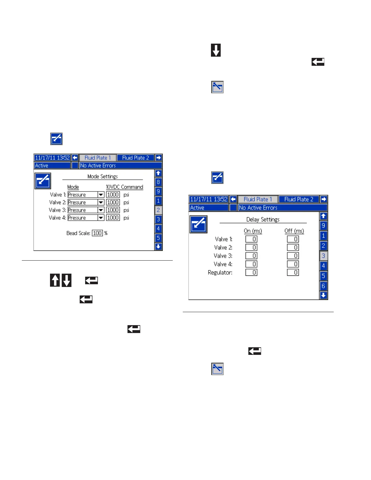 each valve that will be used. Press to enter