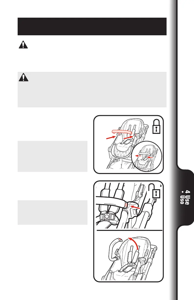 brazos no es un dispositivo de seguridad. NO levante el cochecito agarrándolo