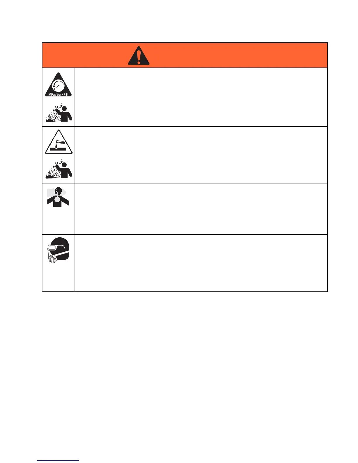 Fluid from the equipment, leaks, or ruptured components can splash in the eyes or on skin