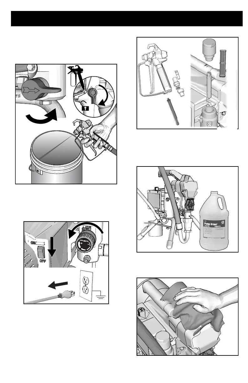15. Wipe sprayer, hose and gun with a rag