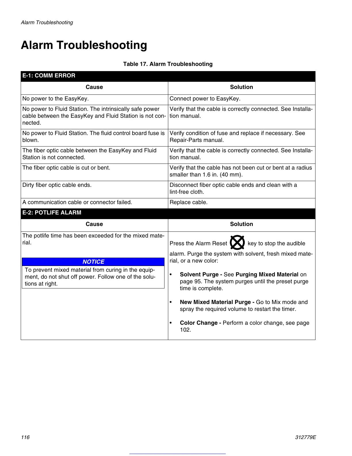 Table 17. Alarm Troubleshooting