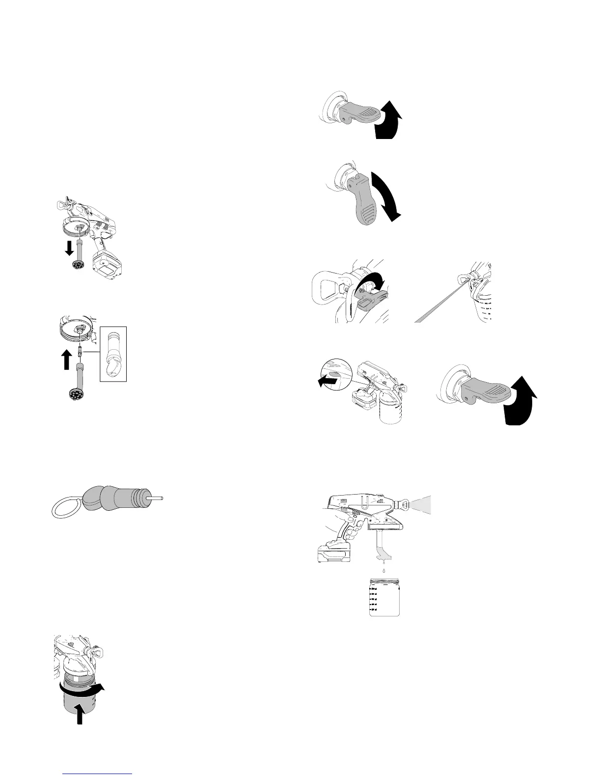 DOWN, hold sprayer slightly above material cup,