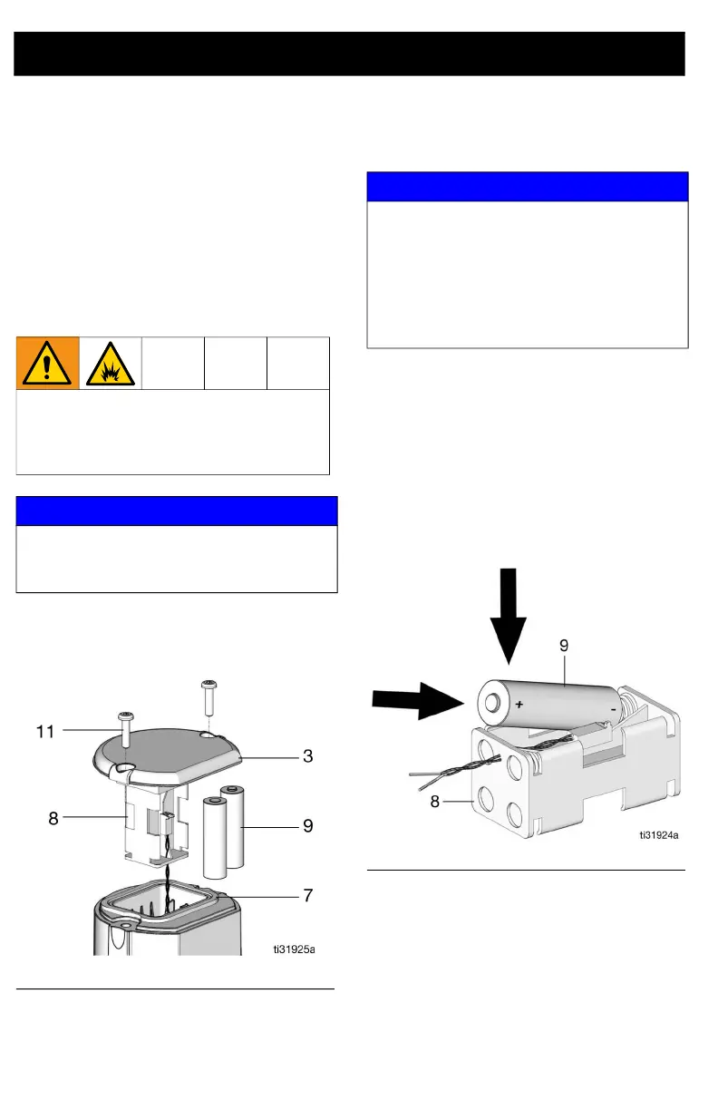 4. Install four, AA, alkaline batteries (9) in