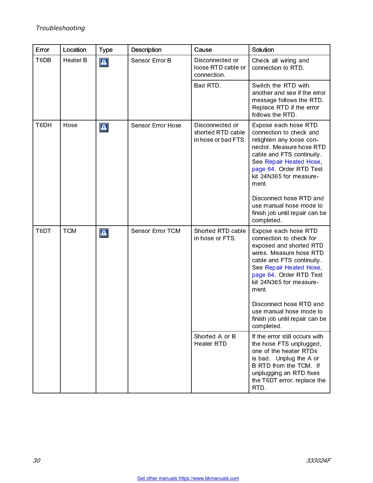 the T6DT error, replace the