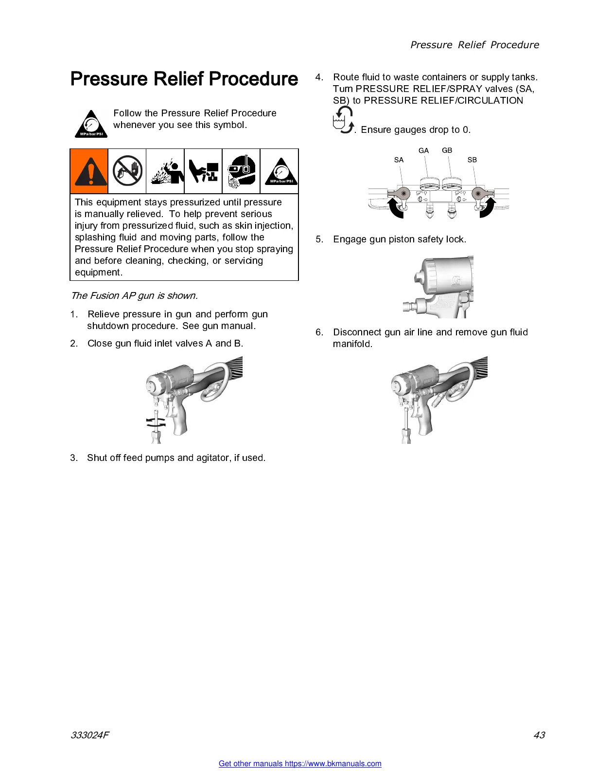 Turn PRESSURE RELIEF/SPRAY valves (SA,