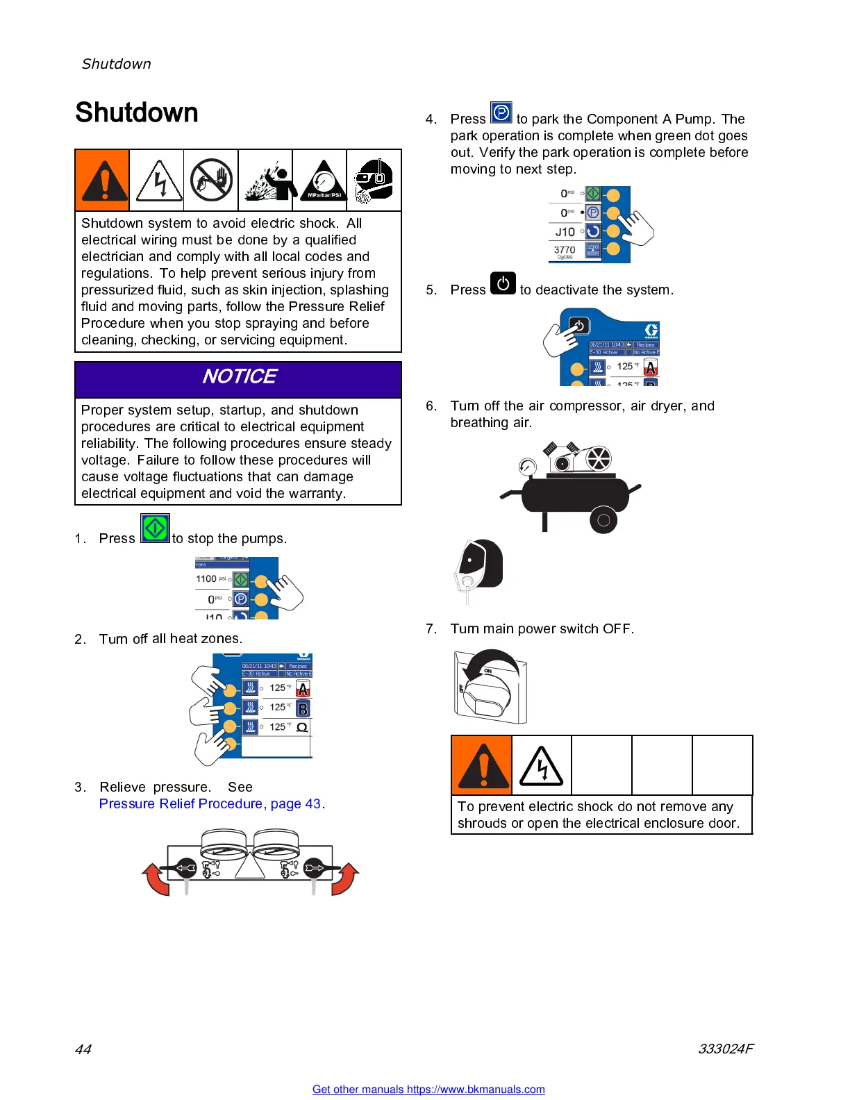 Pressure Relief Procedure, page 43.