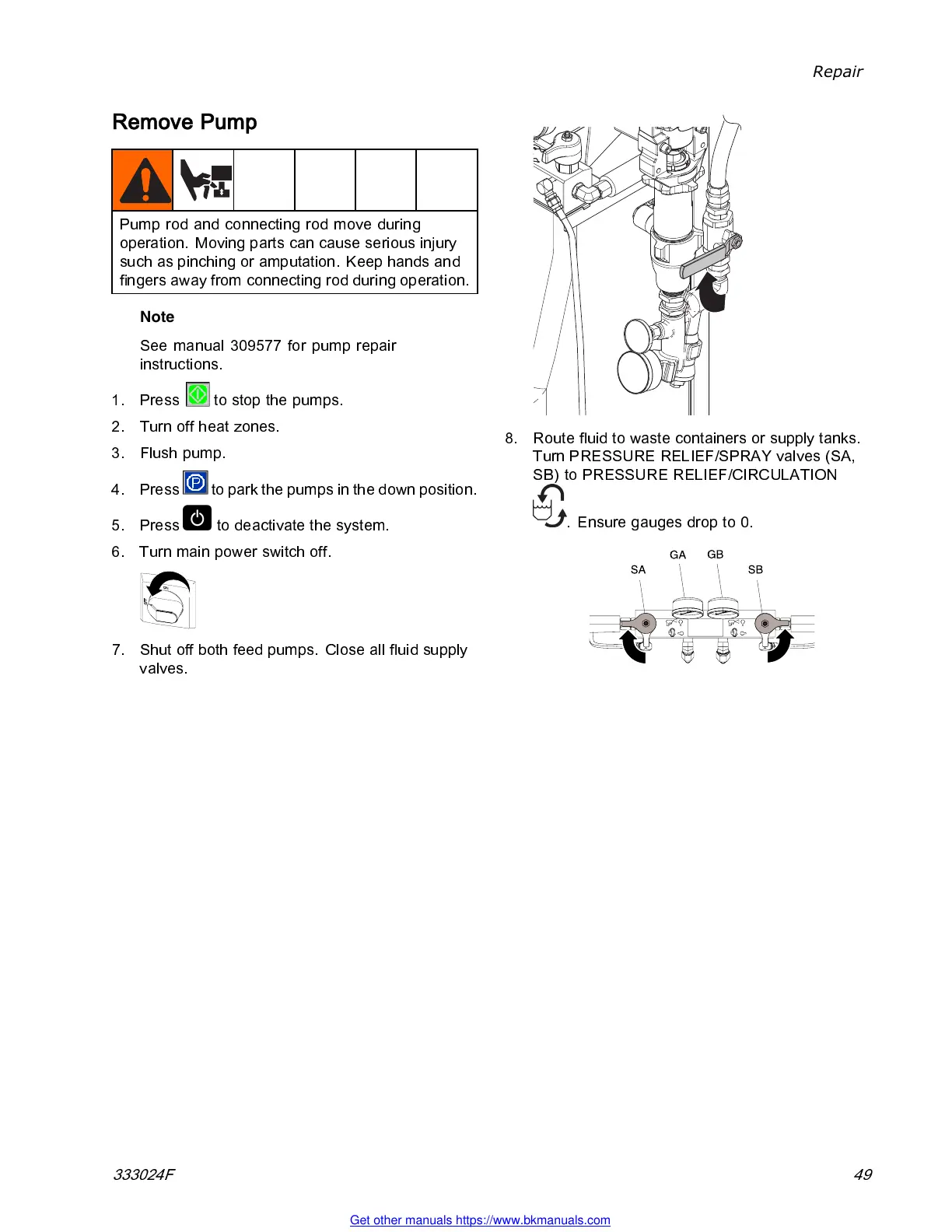 See manual 309577 for pump repair