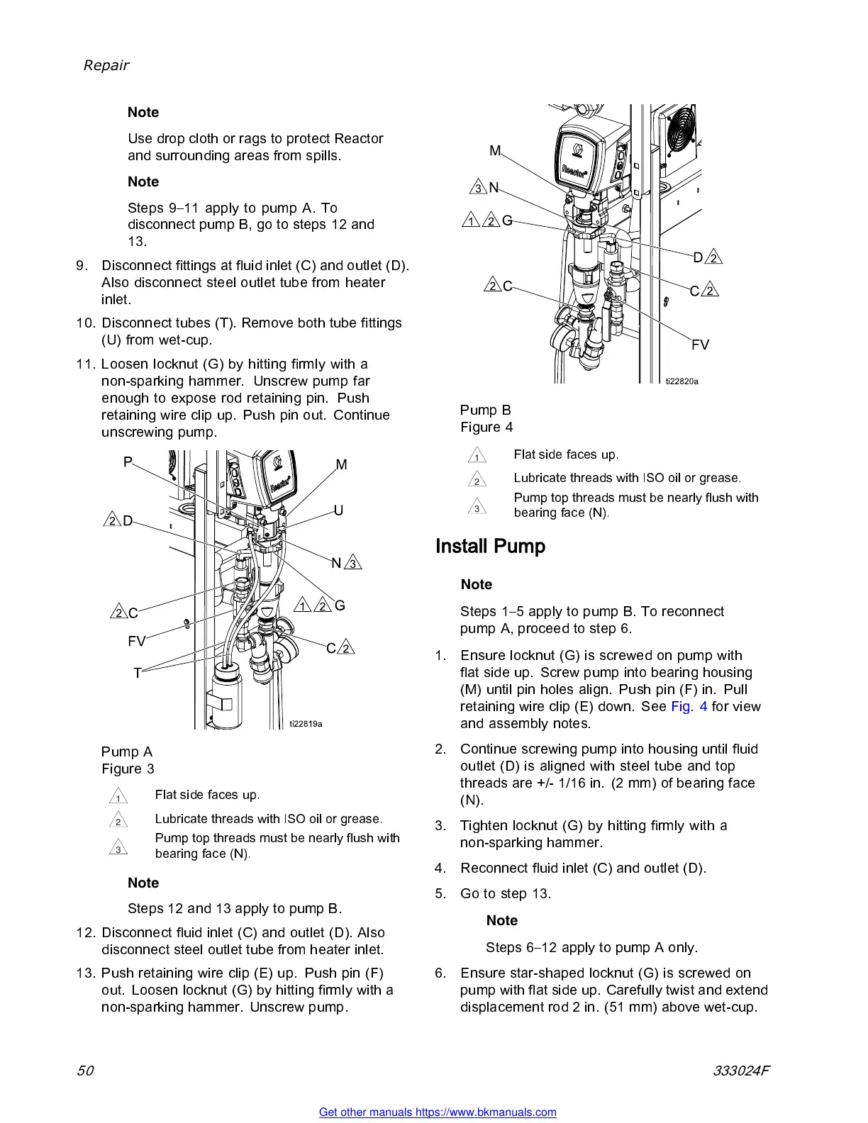 Steps 6–12 apply to pump A only.