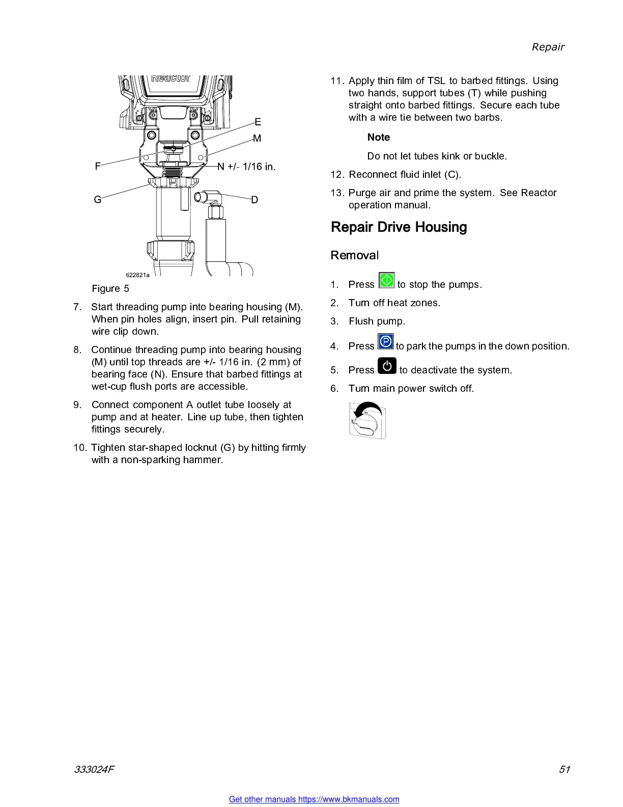 7. Start th readi ng pum p in to beari ng housin g (M).