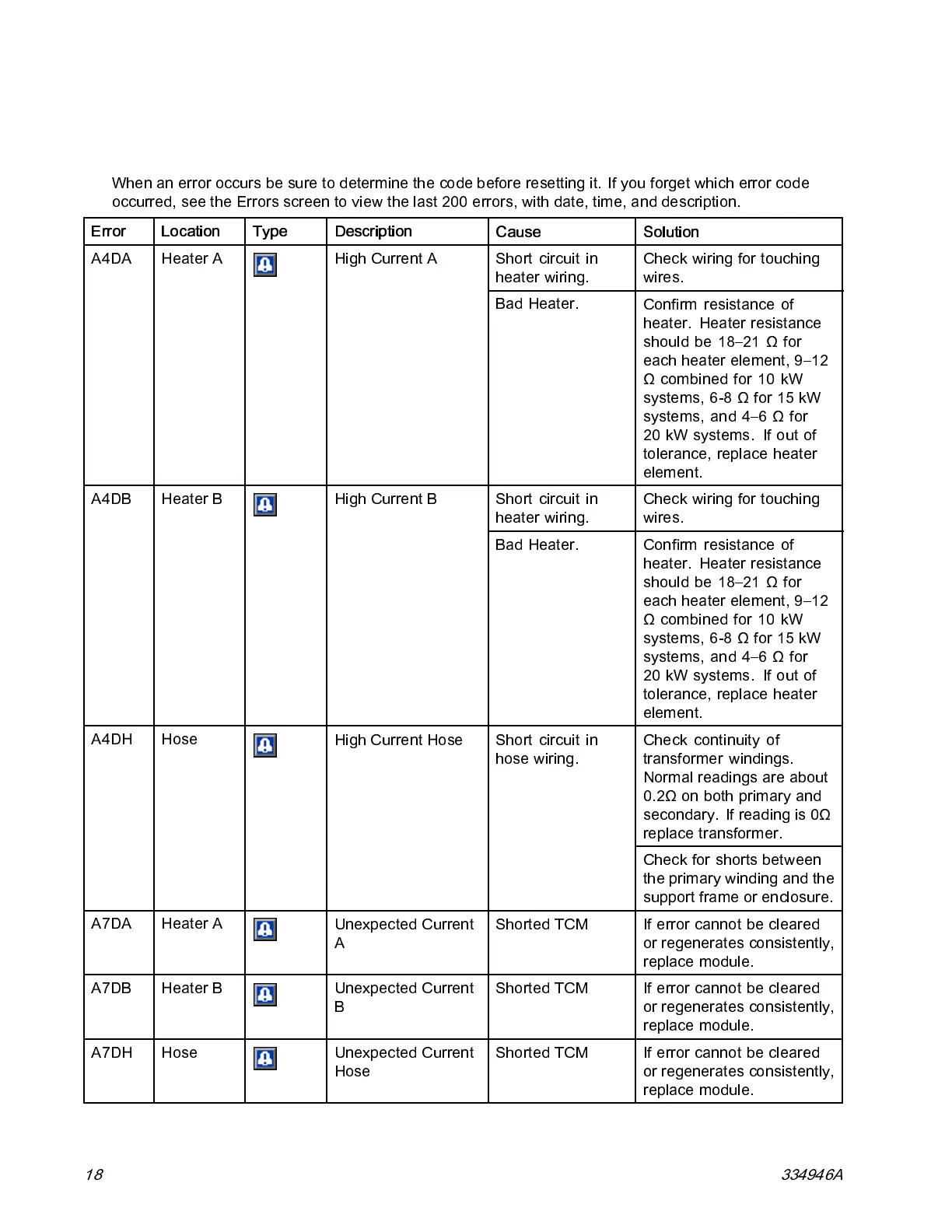 When an e rror occurs be sure to determine the code before rese tting it. If you forget which error code