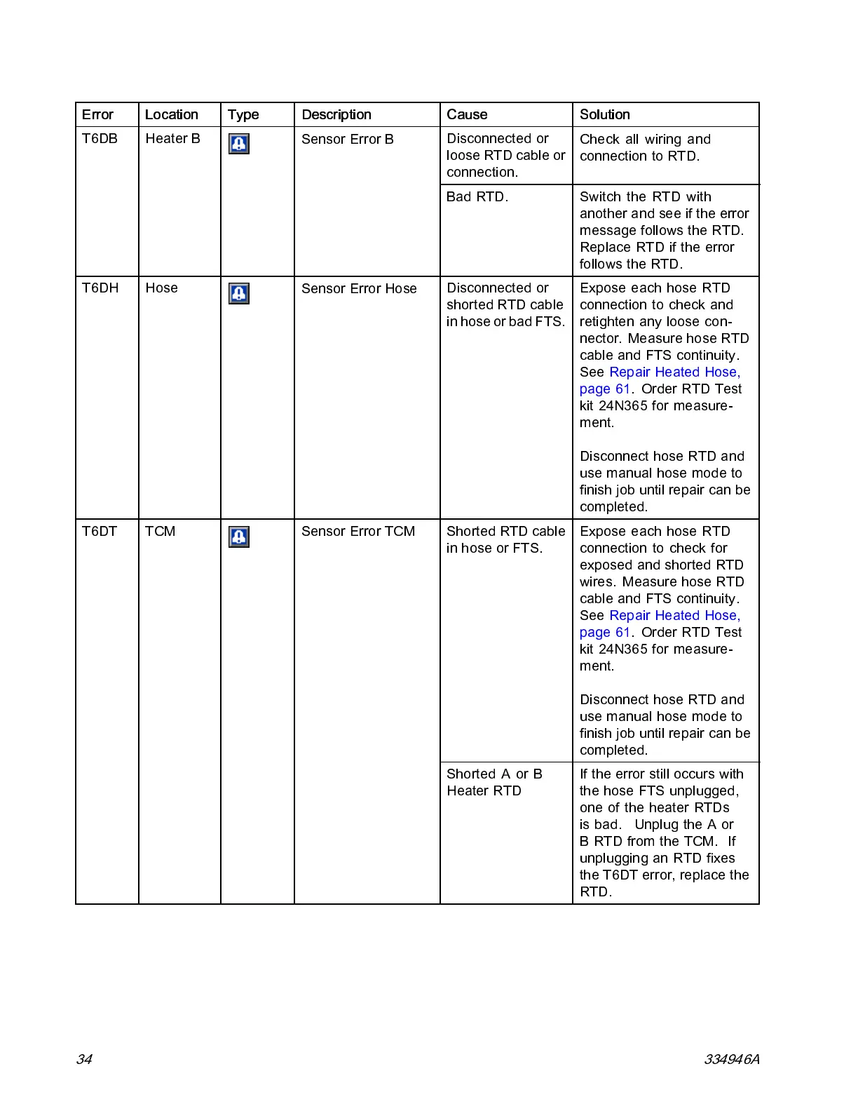 the T6DT error, replace the