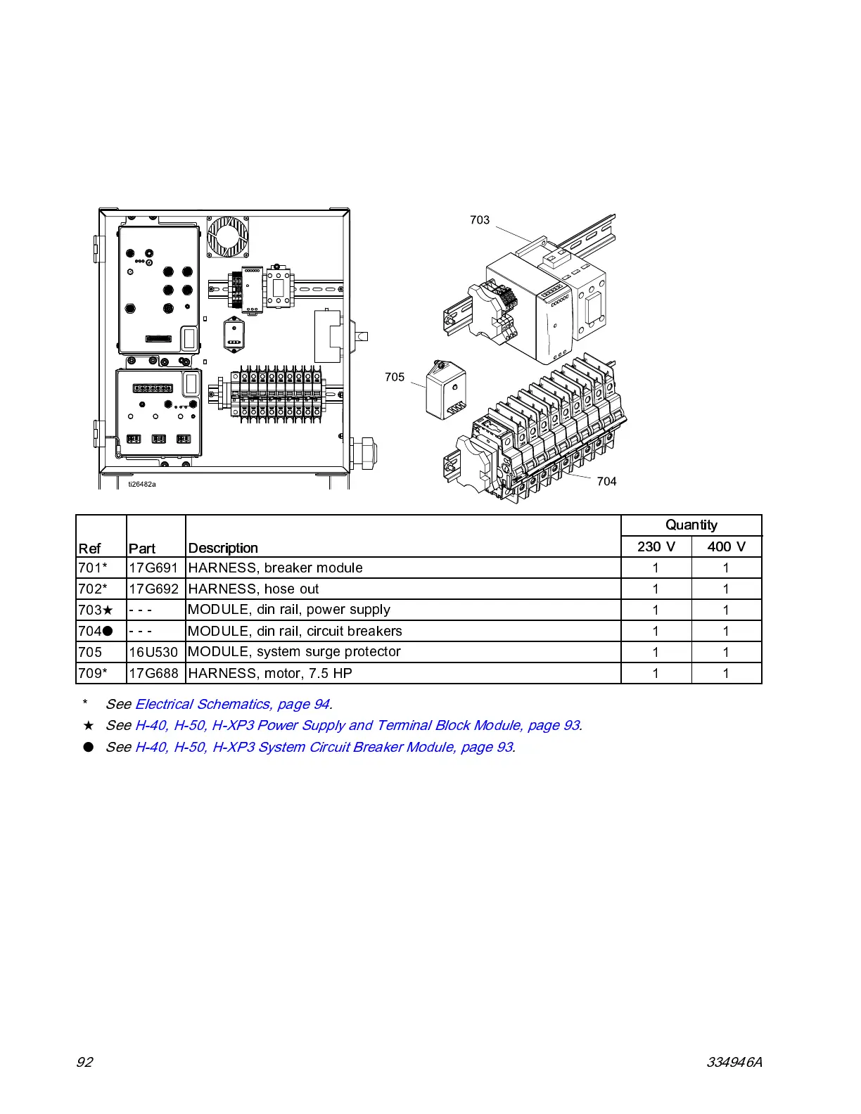 See H-40, H-50, H-XP3 System Circuit Breaker Module, page 93.