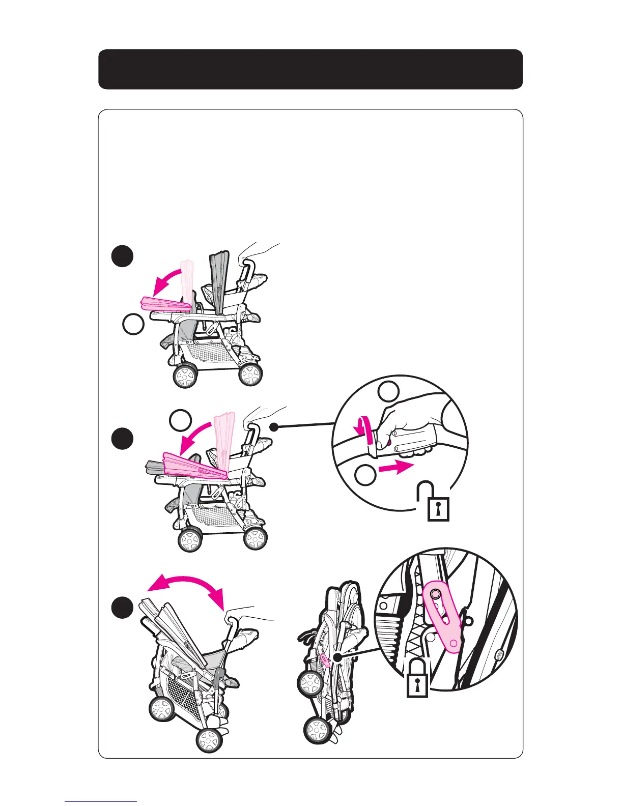 Before folding stroller:(1) remove infant carrier if in use; (2) adjust