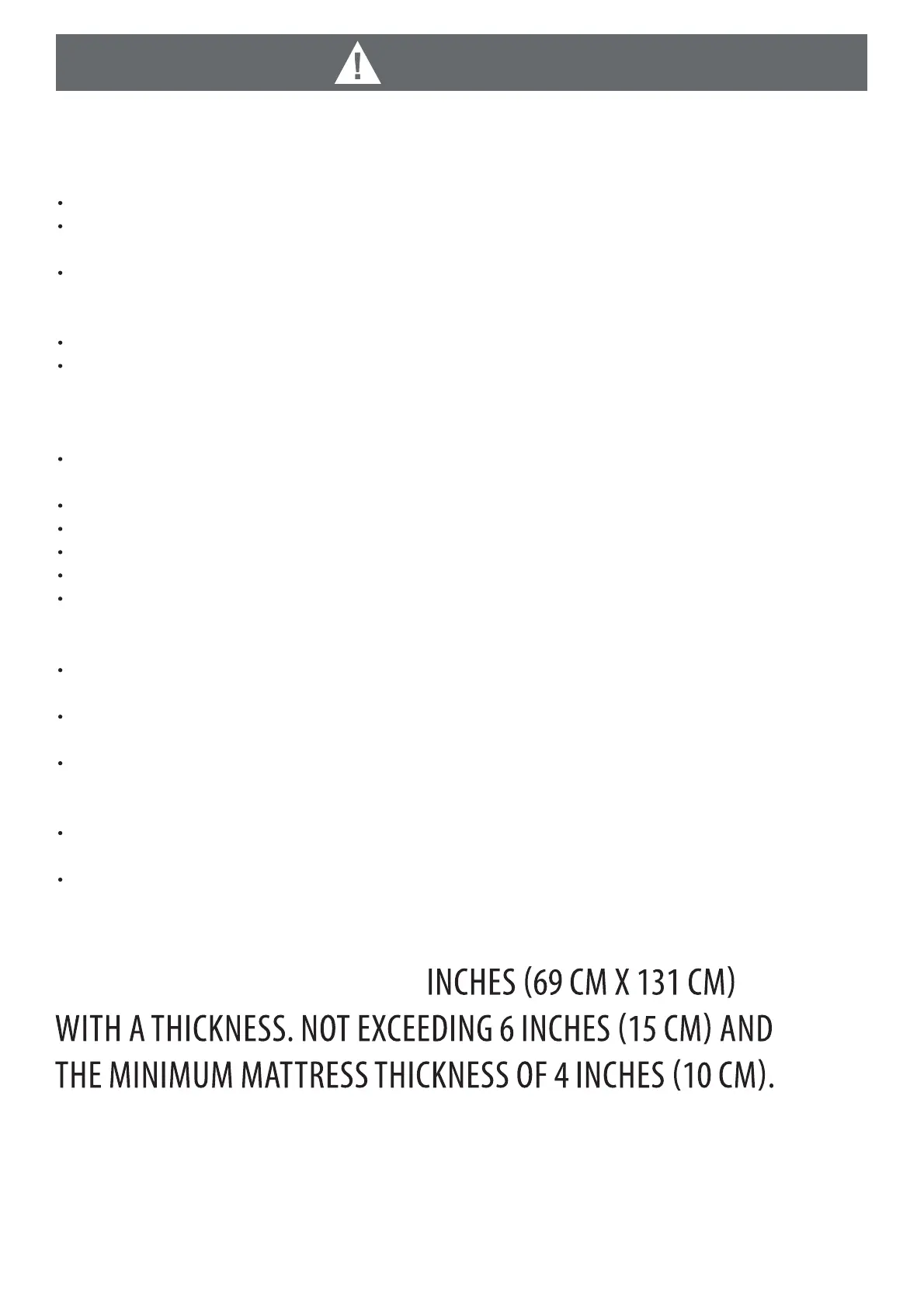 CAUTION: ANY MATTRESS USED IN THIS CRIB SHALL BE