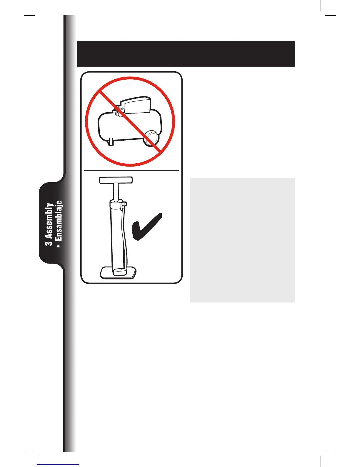 inflate tire. ONLY use hand-pump.