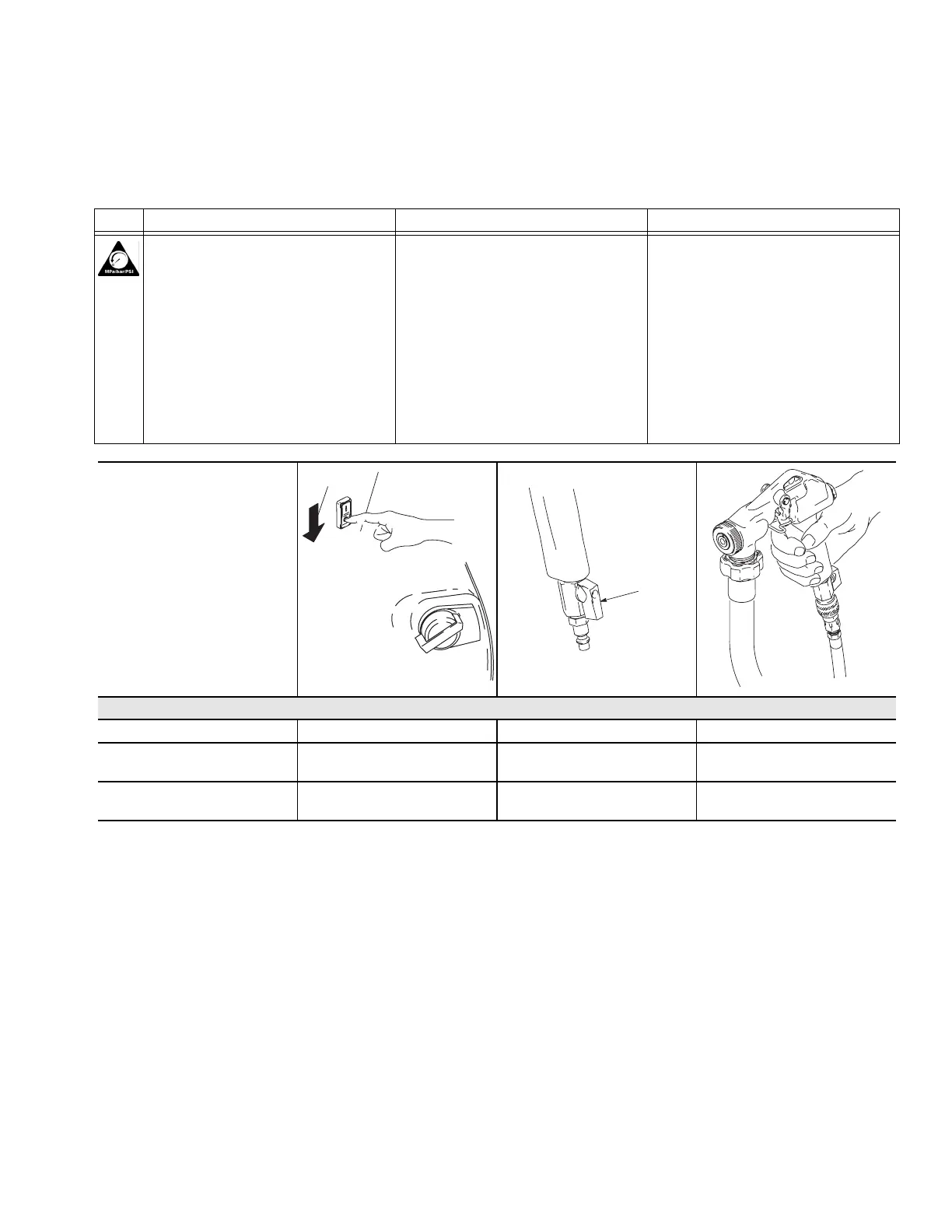 1 Shut OFF air source. 2 Disconnect power source. 3 Open gun air valve (A). 4 Trigger gun to relieve pressure.
