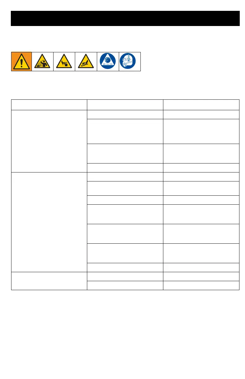 Pump won’t pump material Air lock Open air valve on gun.