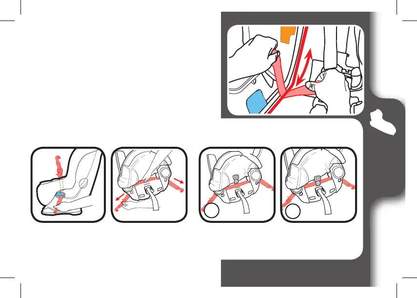 Rear-Facing: Make sure the LATCH strap is in front of the buckle strap when