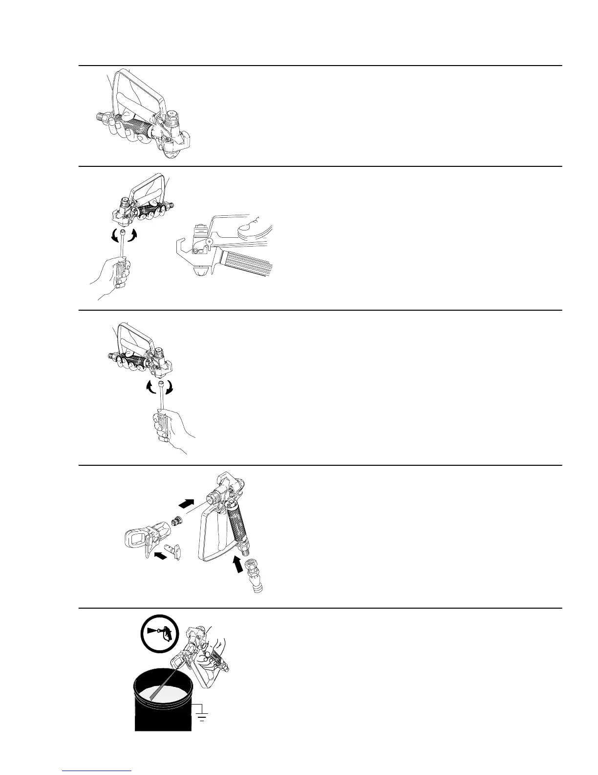 4. Connect fluid hose, install tip and guard.