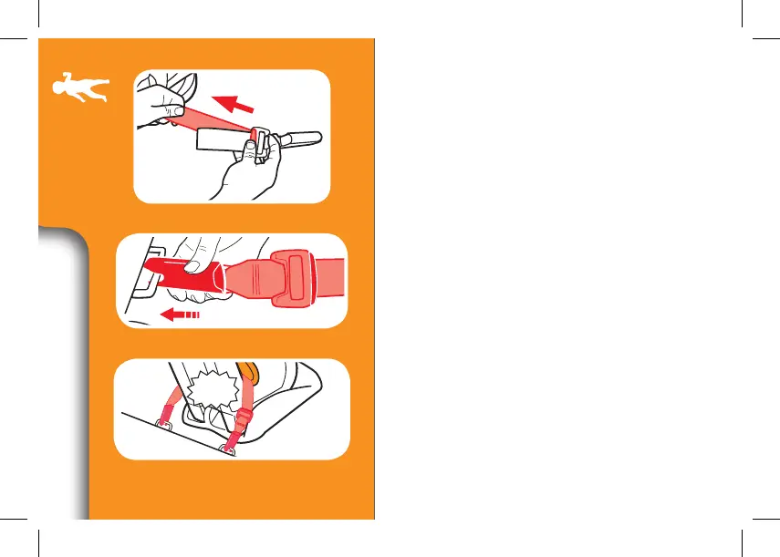 the grey button and pulling on the strap.