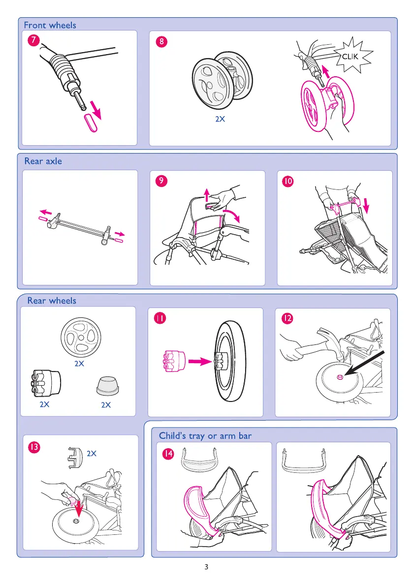 Graco Stadium Duo - Wheel and Axle Assembly; Child Tray or Arm Bar Installation