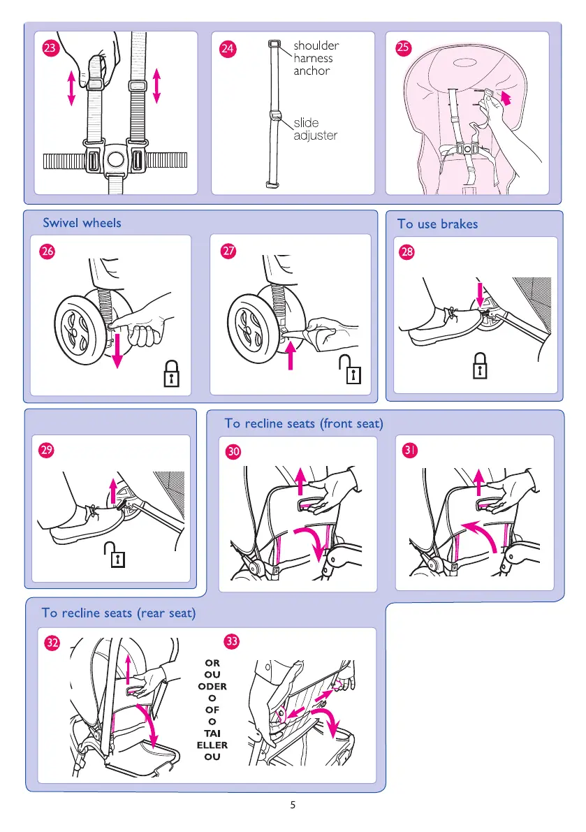 Graco Stadium Duo - Operational Adjustments; Swivel Wheels and Brakes; Seat Reclining