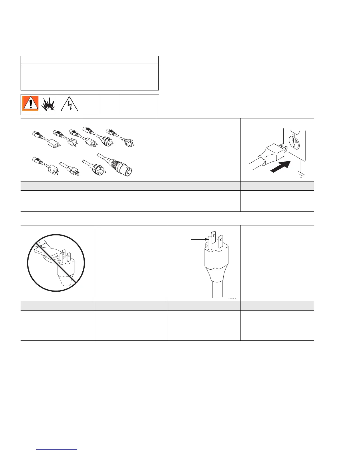 • The sprayer cord includes a grounding wire with an appropriate grounding contact. • The plug must be plugged into an