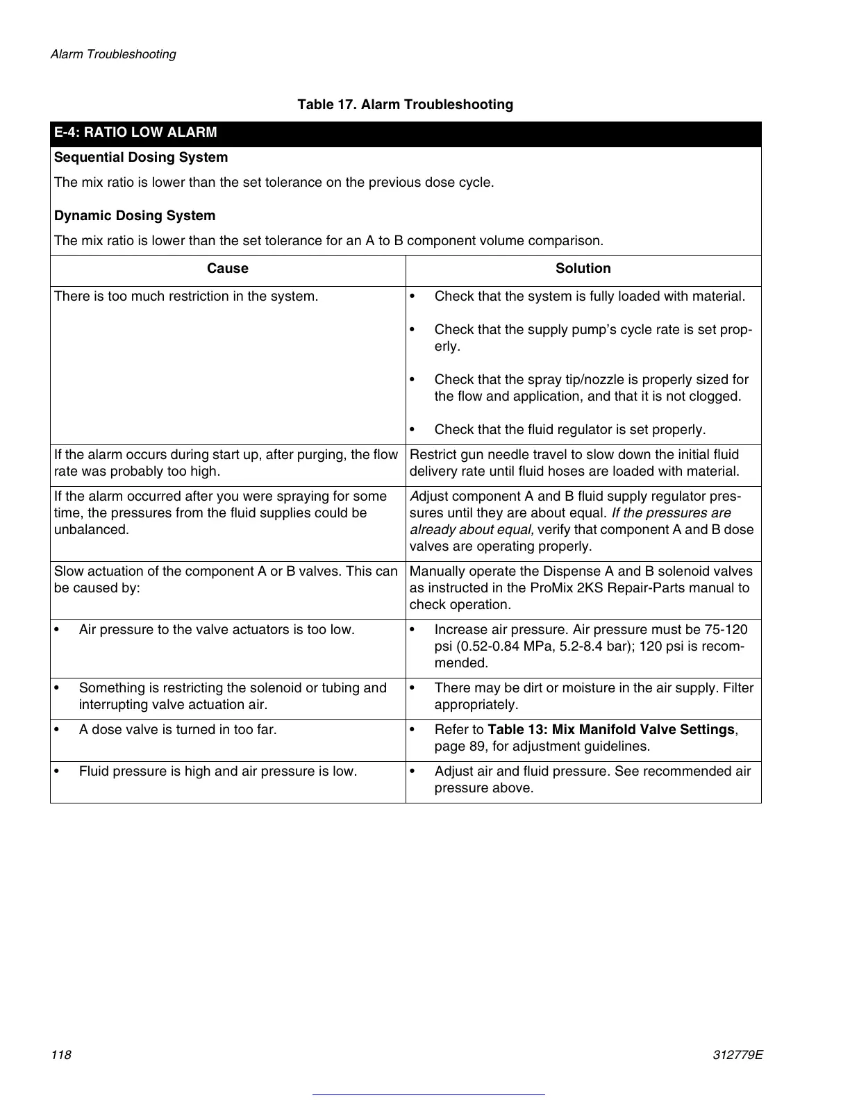 Table 17. Alarm Troubleshooting
