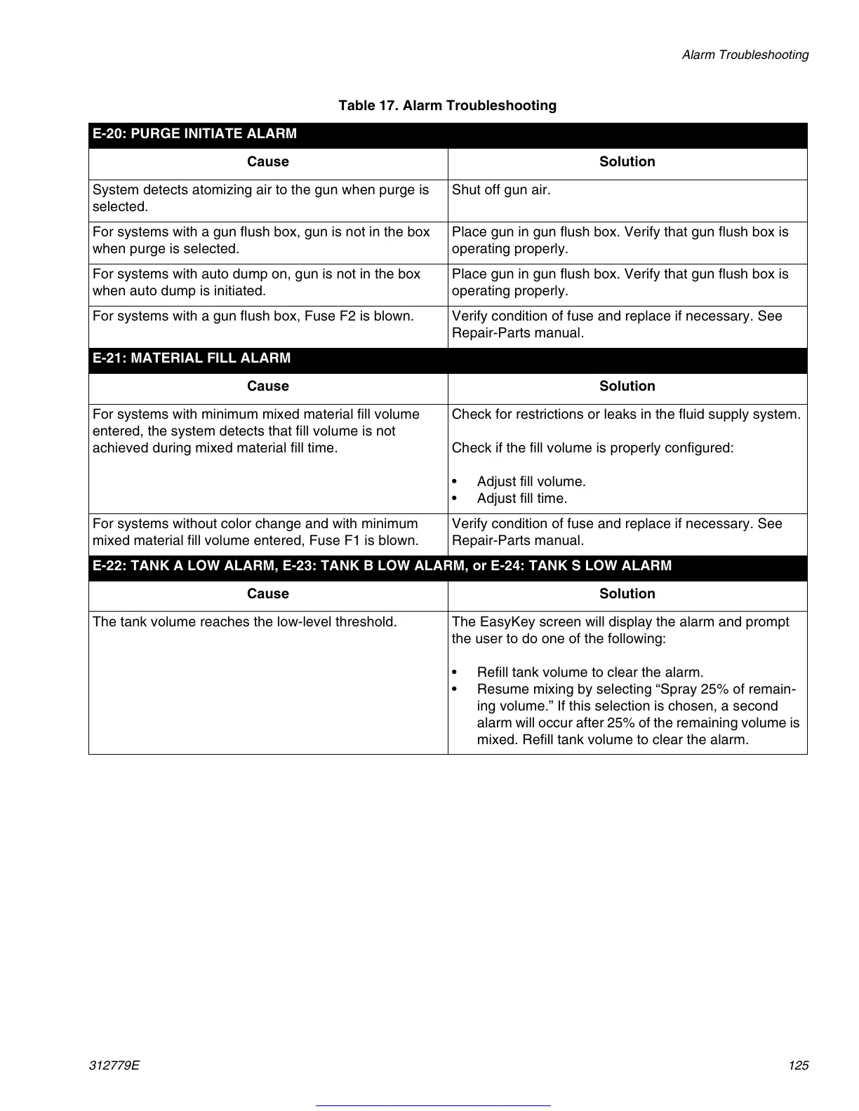Table 17. Alarm Troubleshooting