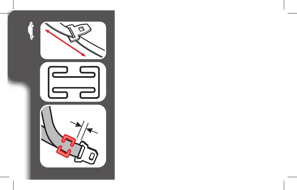 Attach locking clip to lap and shoulder belts as shown.