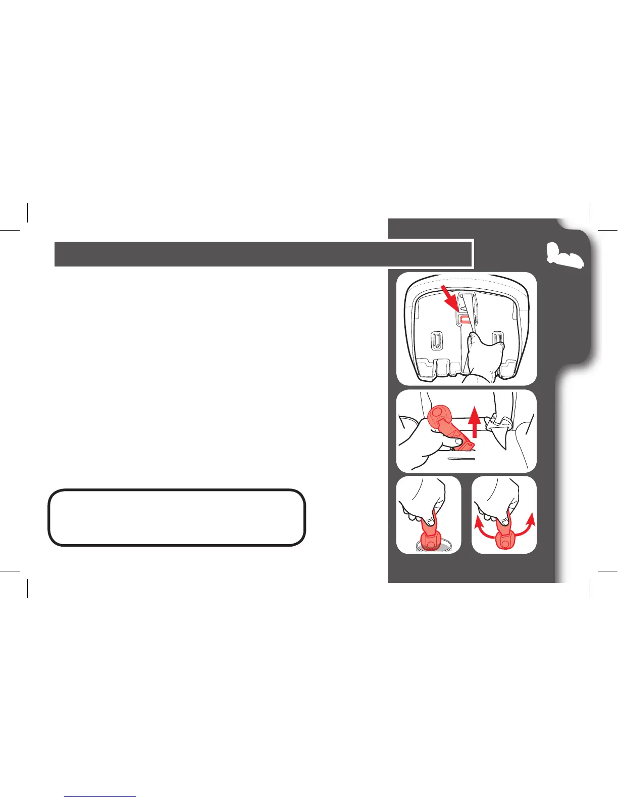 into the same slot it was removed. Pull up on buckle strap to