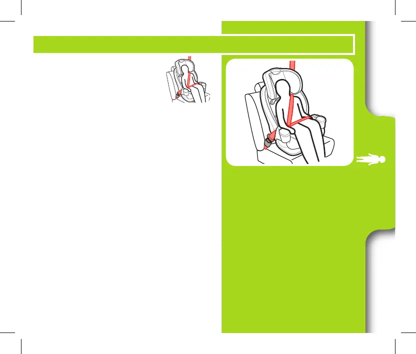 • Vehicle belts MUST lie flat against child