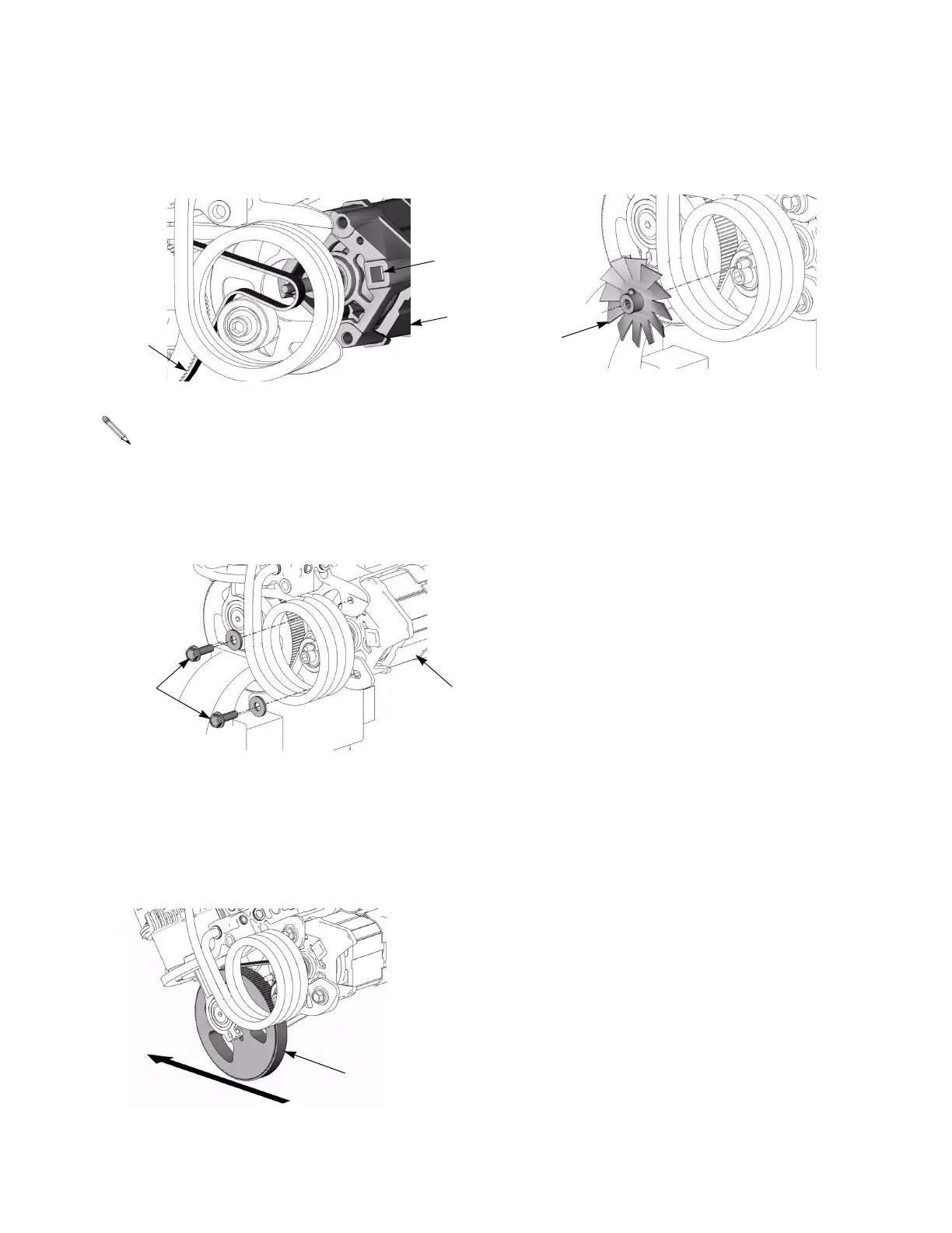 mounting bolts). Tighten motor bolts (105).