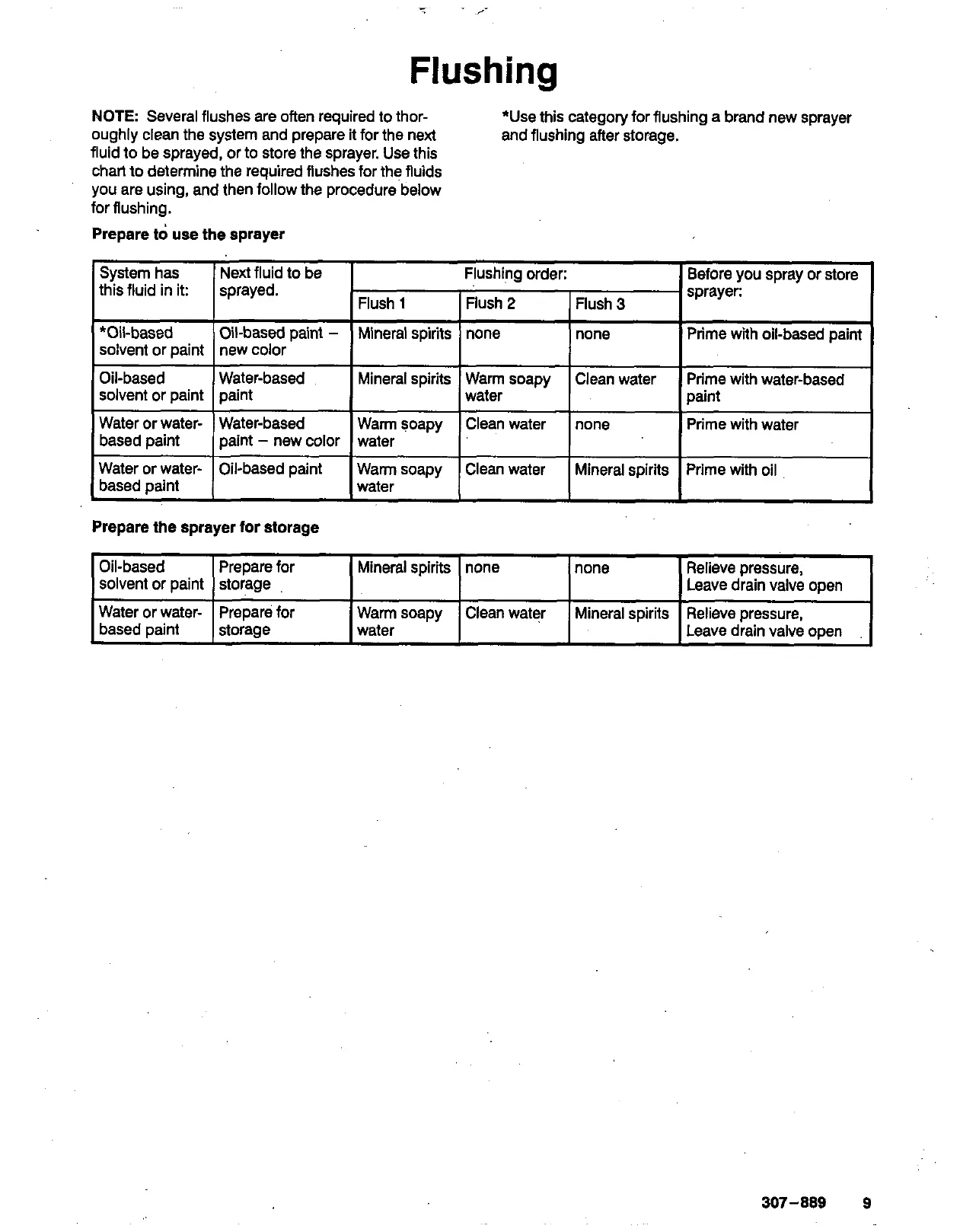 and flushing after storage.