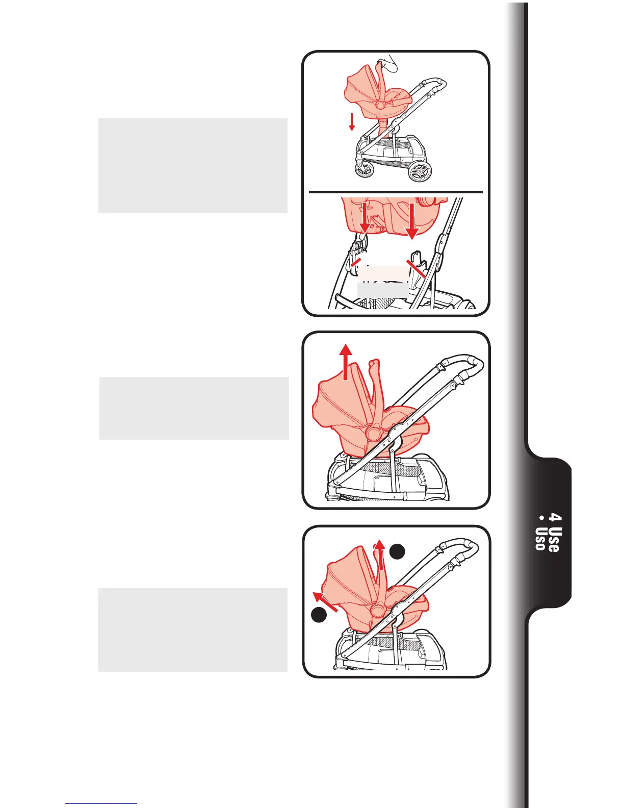 4. To remove car seat: (a) squeeze