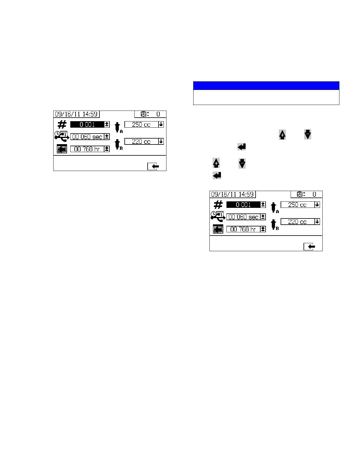 Press and to select the preferred pump size.