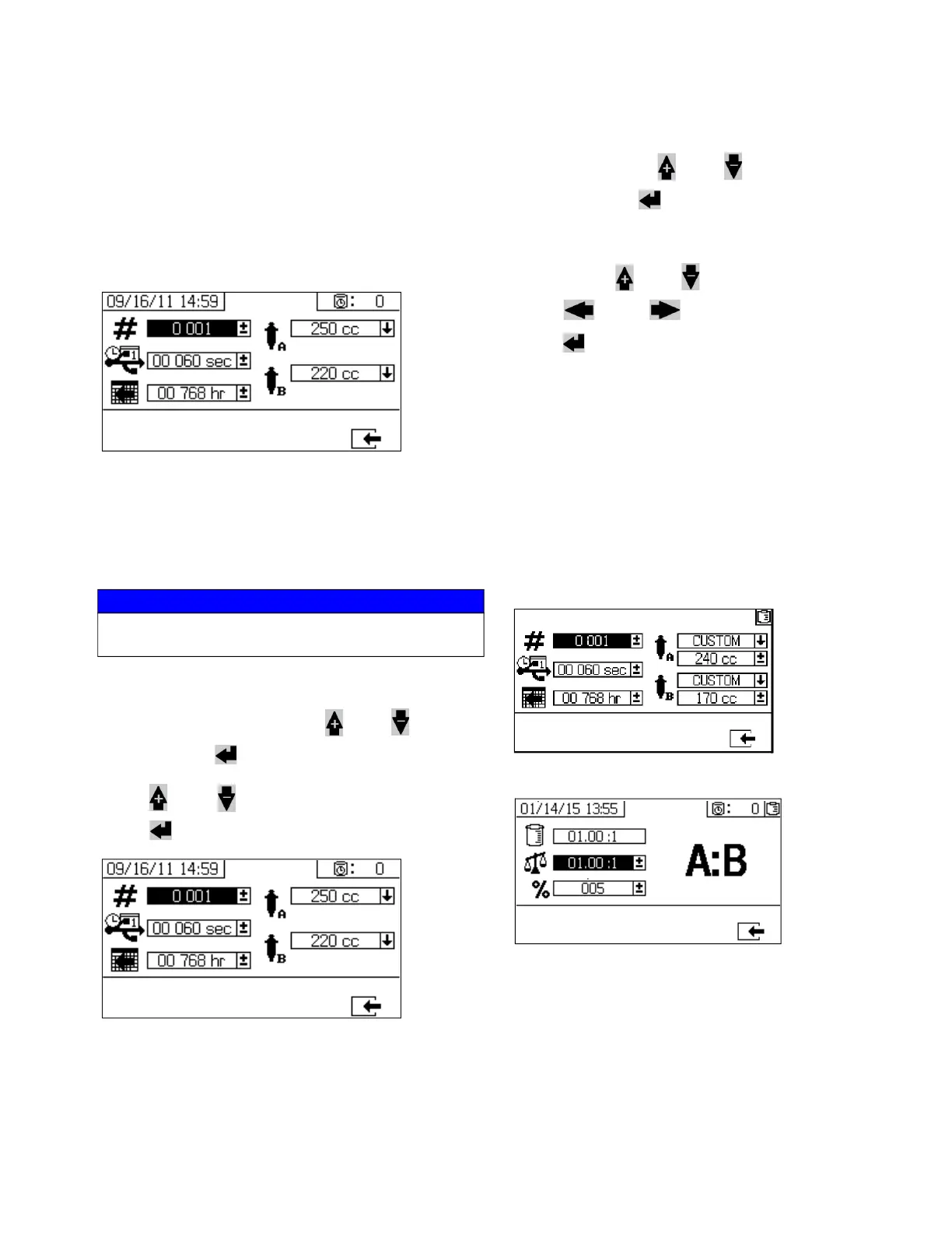 For Ratio by Volume Mode, use this screen to set the