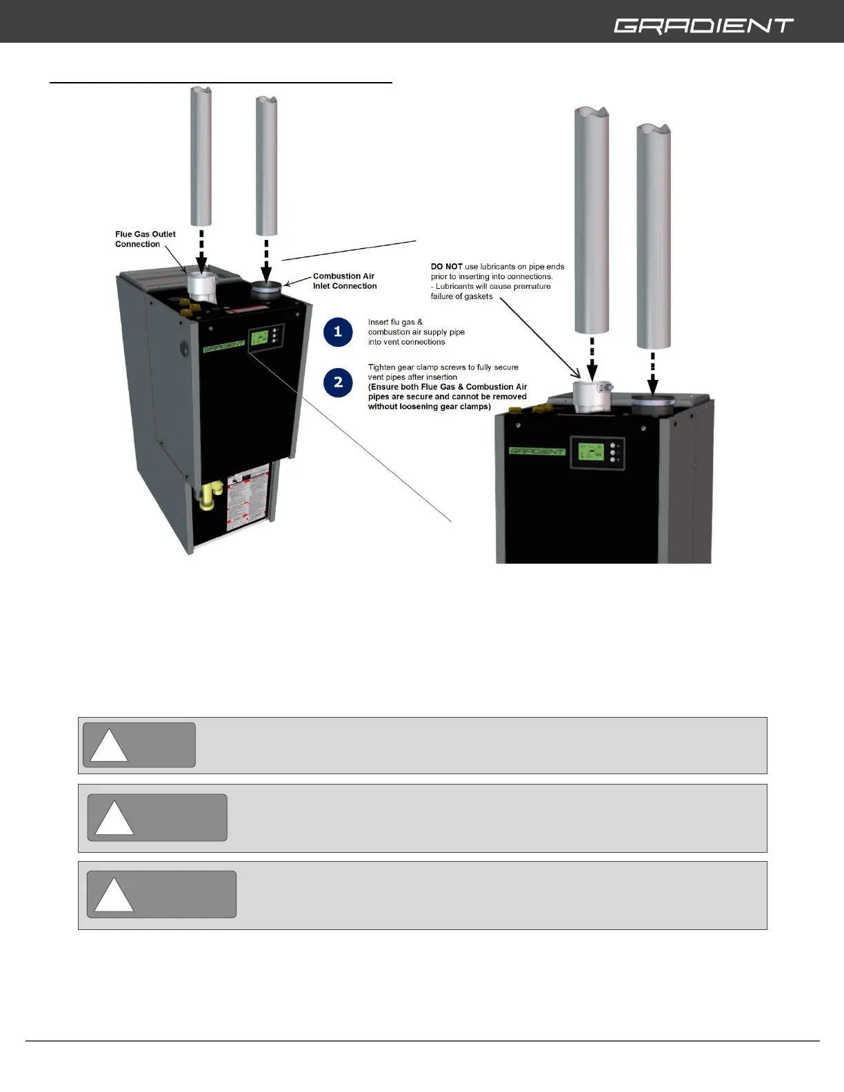 Both Flue Gas Outlet & Combustion Air Inlet Venting must be fully supported to