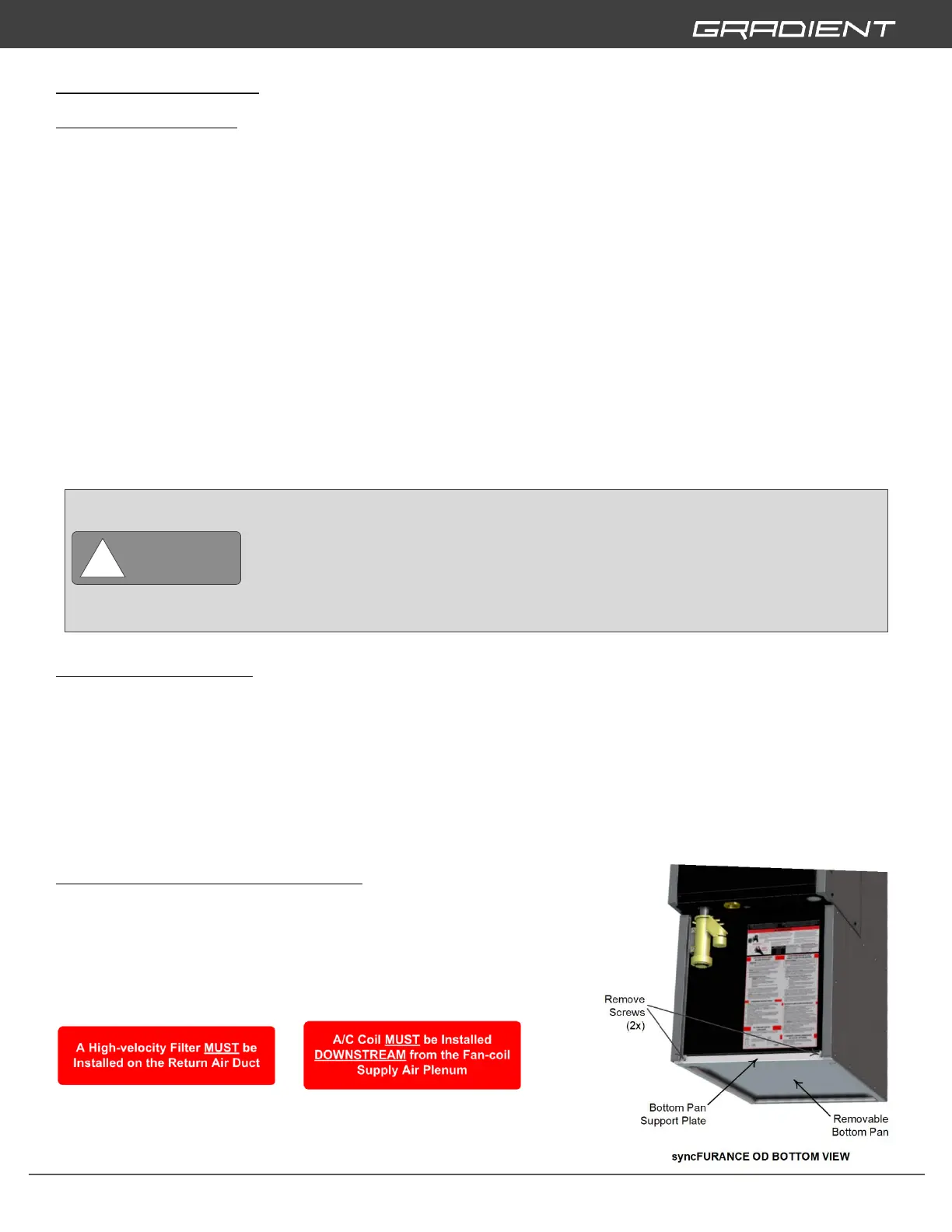 1. syncFURNACE OD fan-coil installation must conform to local building codes.