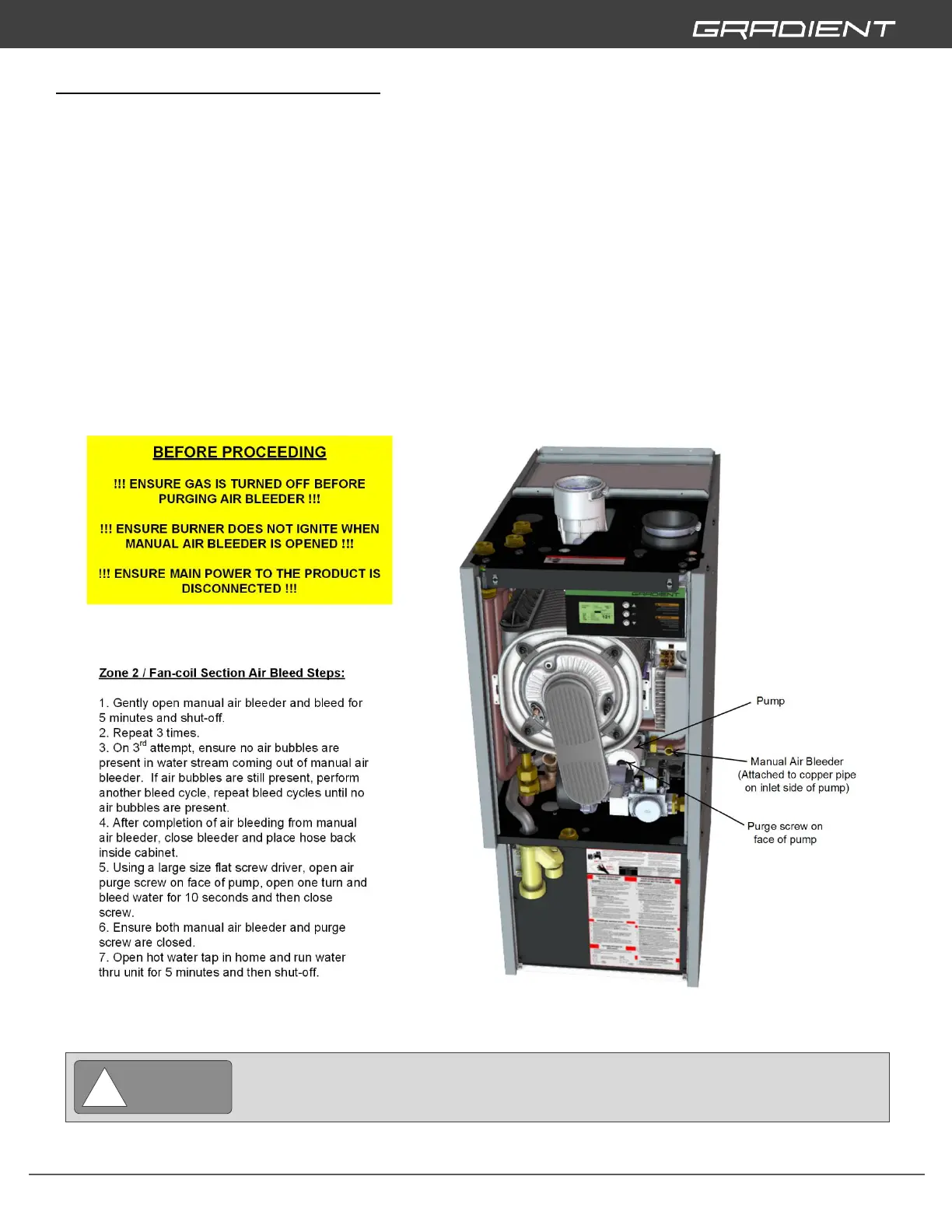 ENSURE GAS IS TURNED OFF BEFORE OPENING MANUAL AIR BLEEDER