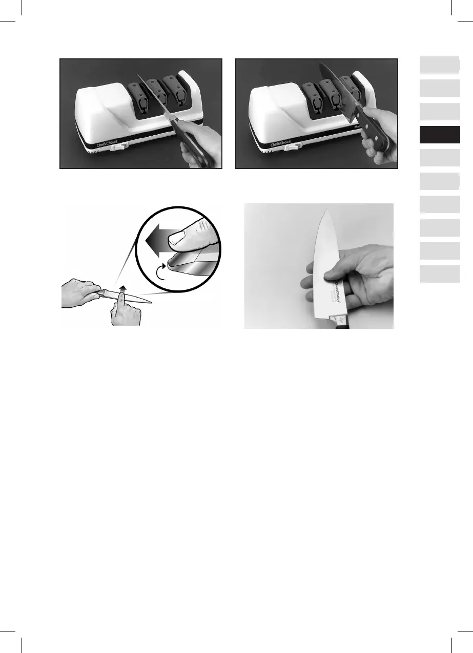om een vlijmscherpe snede te krijgen. Net zoals in Slijpgang 1 en 2, haalt u het mes