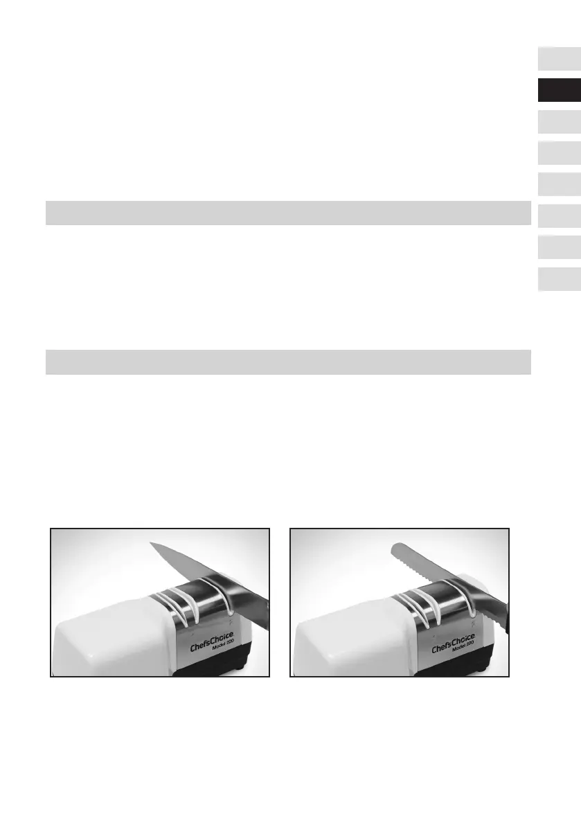 ward pressure. Listen to confirm the sharpening disks are turning. Then test the edge