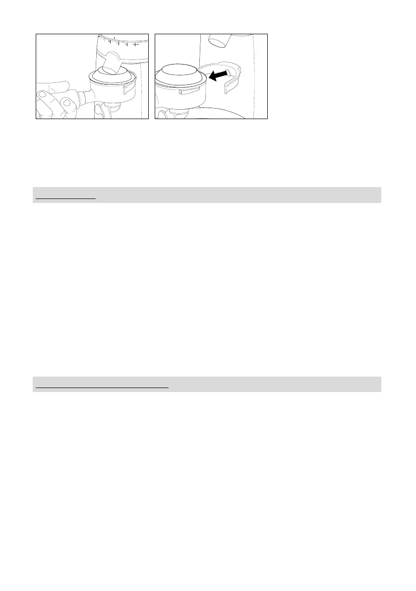 ● Ta av kaffebønnebeholderen, hold fast malekransen, trykk bønnebeholderen nedover og