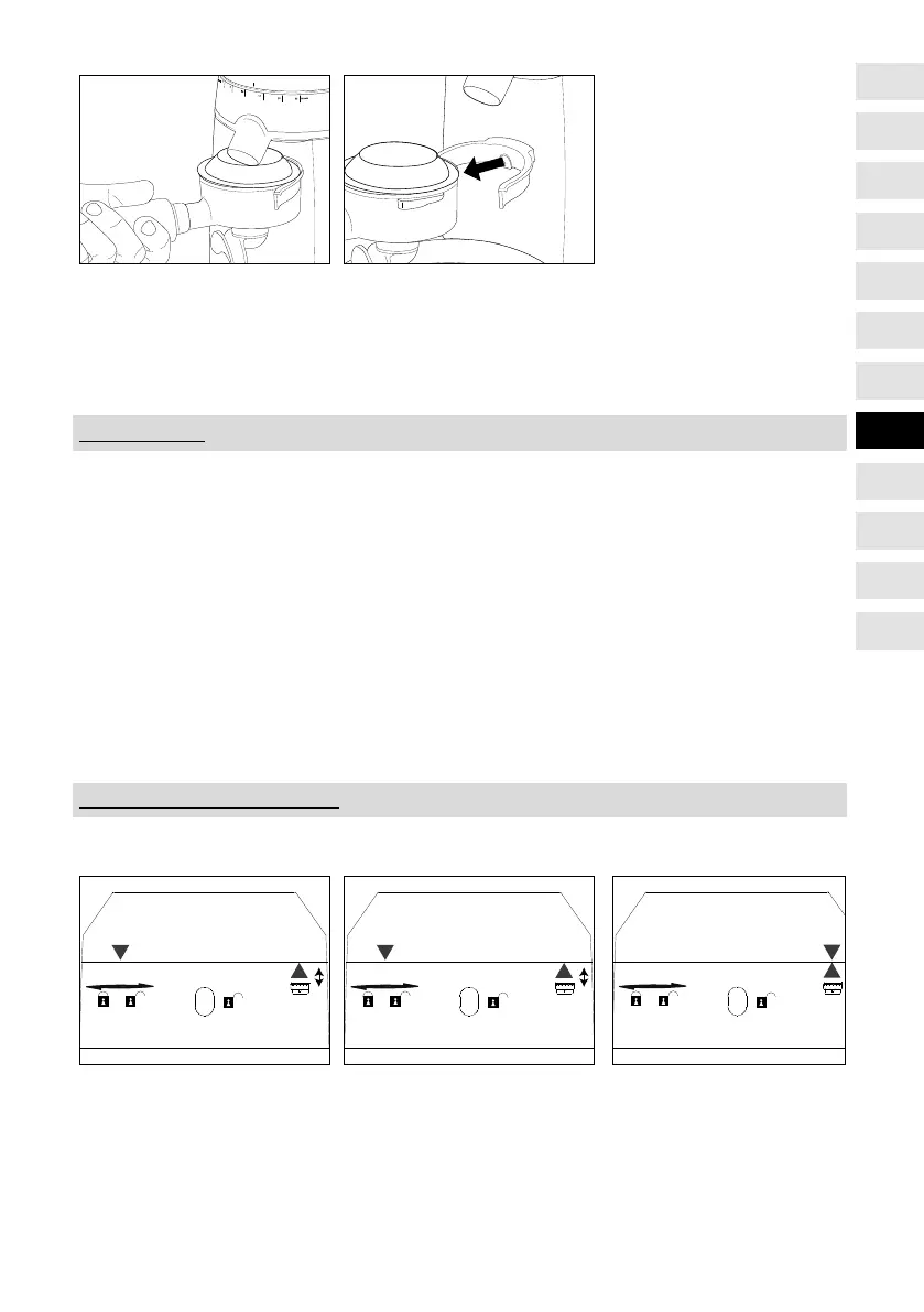 ● Ta bort bönbehållaren, håll fast kvarnstenskransen, tryck bönbehållaren nedåt och vrid av